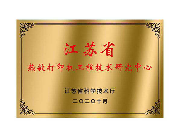 10月,获评“江苏省热敏打印机工程技术研究中心